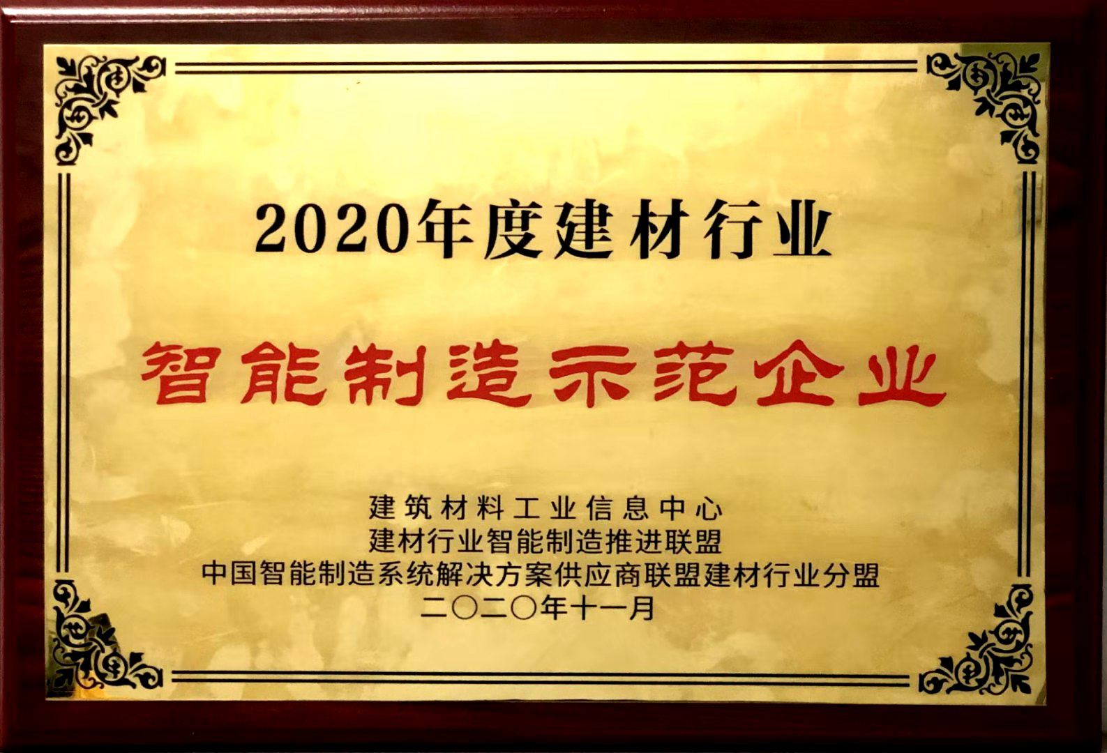 “建材行業(yè)智能制造示范企業(yè)”獎牌